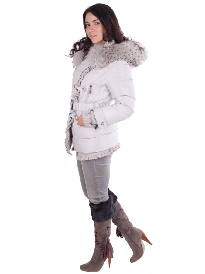 Длина куртки – ниже линии бедёр, прикрывает поясницу. Манжеты на рукавах украшены вязаными вставками, которые плотно прилегают к запястьям, не позволяя холодному воздуху проникать внутрь. По краям куртки и возле запаха на молнии так же имеются вязаные вставки.
