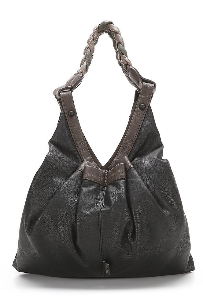 Благодаря уникальным разноцветным плетёным ручкам и удивительной мешкообразной форме сумки, она привлекает внимание и выглядит очень интересно. Сумка открывается по диагонали.