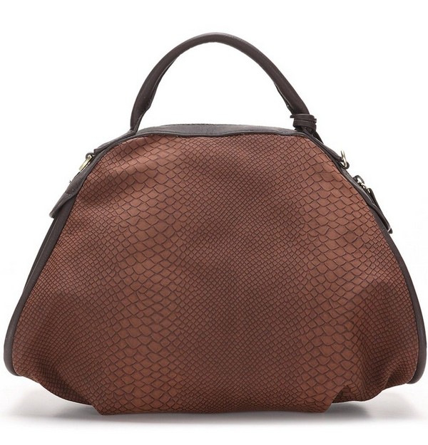 Сумка выполнена из кожи под рептилию, имеется две боковые кожаные вставки для расширения внутренней полости сумки. Оснащена одной небольшой ручкой, поэтому е удобно носить либо в руке, либо возле локтя. Змейка и замочек выполнены под старинное золото, что придаёт этой сумке изюминку и шарм.