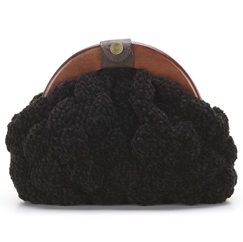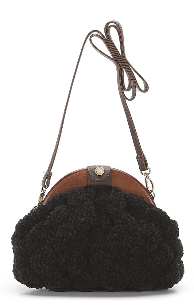 Необыкновенная сумка сочетает в себе, казалось бы, несовместимые материалы - мягкое вязаное полотно и твердое дерево.