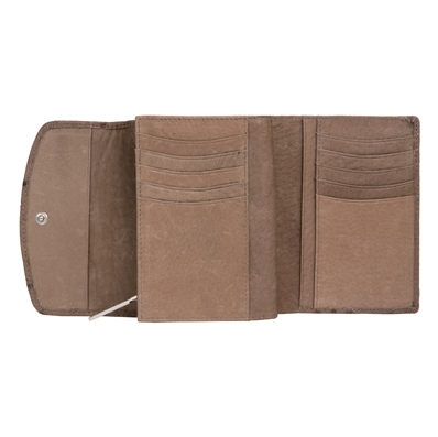 Кошелек оснащен металлической застежкой молнией. Вместительное внутреннее пространство имеет отделения для бумажных купюр, мелочи, кредитных карт и визиток. Он будет постоянным Вашим спутником.