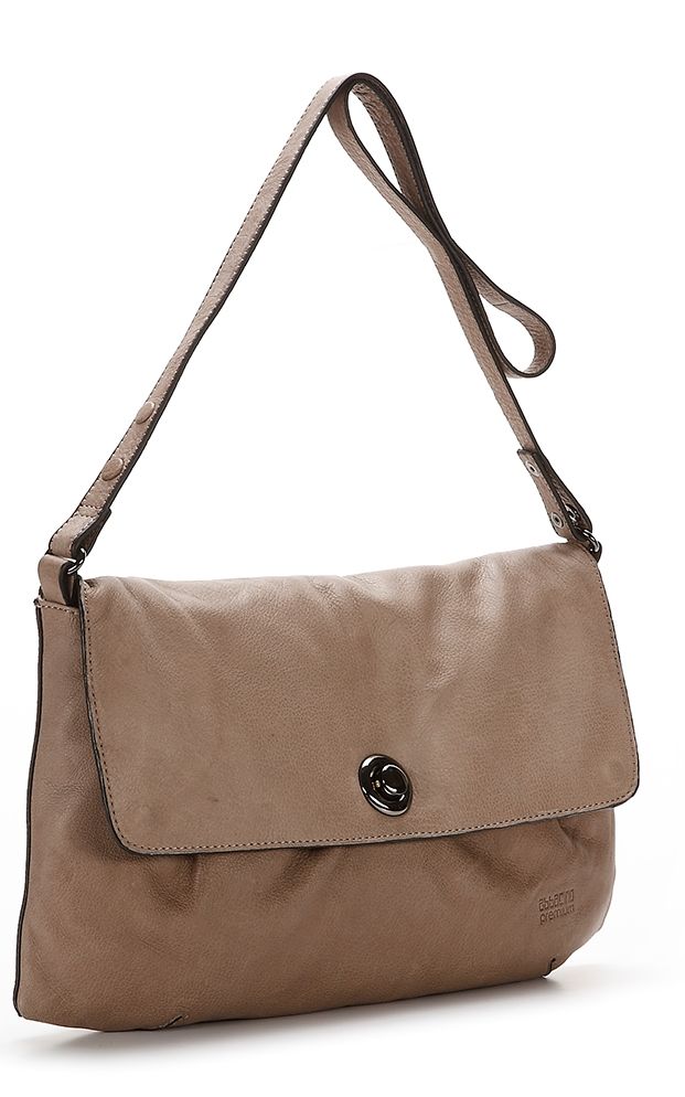 Сумка застёгивается на небольшую металлическую заклёпку-магнит. При желании, края верхнего прикрывающего полотна можно подвернуть внутри, придав сумке совершенно другой вид.
