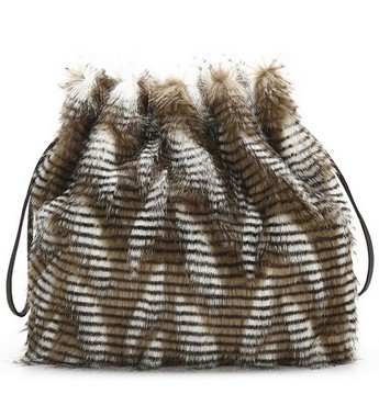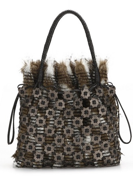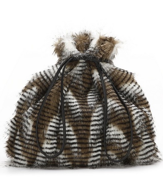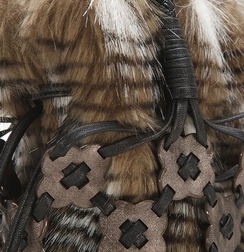 Меховая сумка завязывается на два чёрных тонких шнурка. Благодаря такому необыкновенному сочетанию, эта модель смотрится очень эффектно и привлекательно. Идеальный вариант для зимних месяцев, когда в одежде максимально часть присутствуют меховые вставки.
