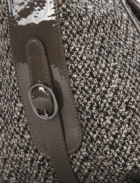 Материал: твид (натуральная шерсть) + вставки из лака (натуральная кожа). Подкладка – искусственный шёлк.