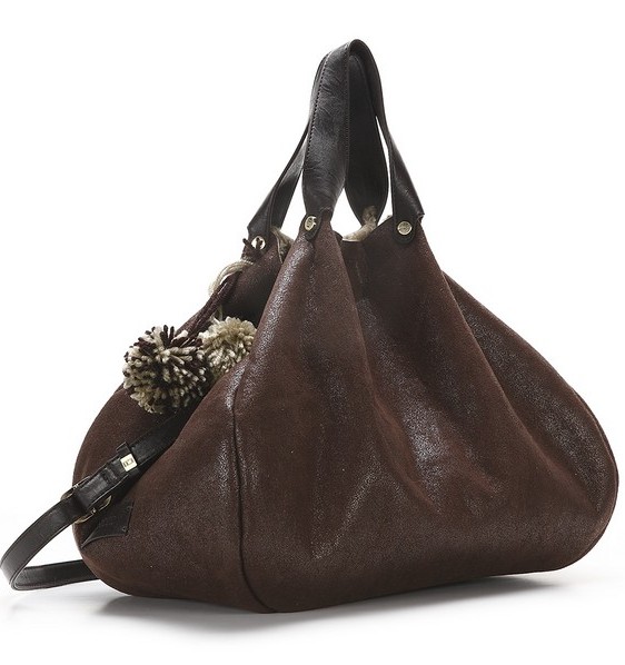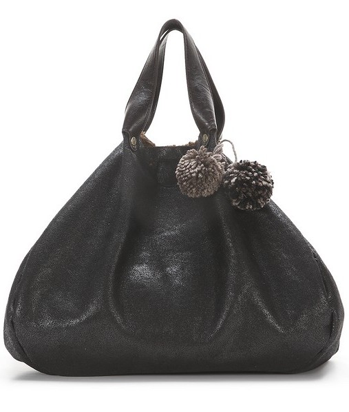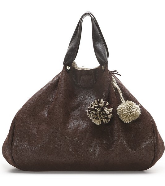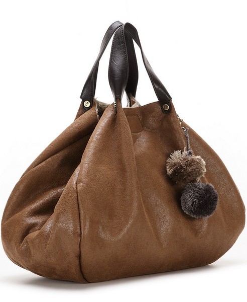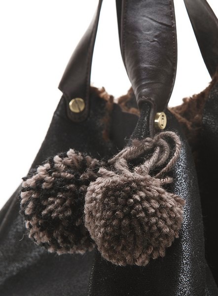 Два меховых бомбончика позволяют затянуть сумку с помощью двух шнурков, которые пронизываю её верхнюю часть. Сумка выглядит стильно и молодёжно.
