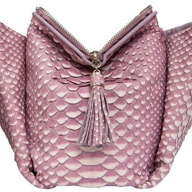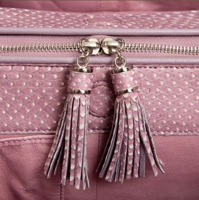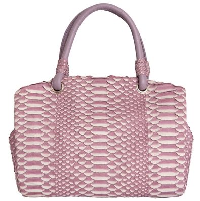 Сумка выполнена из натуральной высококачественной кожи питона в сочетании с телячьей кожей, из которой сделаны надежный и удобные ручки. Также ее можно носить на плече.