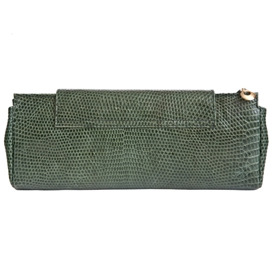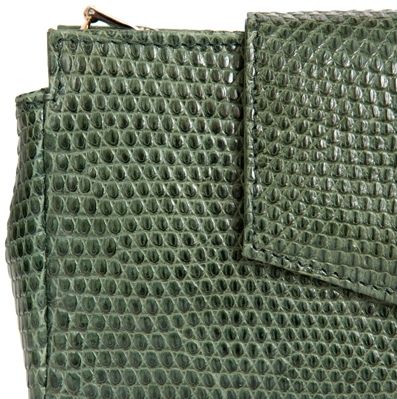 Изумительная сумочка-клатч темно-изумрудного цвета, выполненная в классическом стиле, станет незаменимым аксессуаром на любой вечеринке. Эта маленькая вечерняя сумочка очень удобна в использовании. Закрывается оригинальным клапаном на магните, под которым расположена металлическая молния, украшенная изящной подвеской. Выполнена из натуральной кожи ящерицы.
