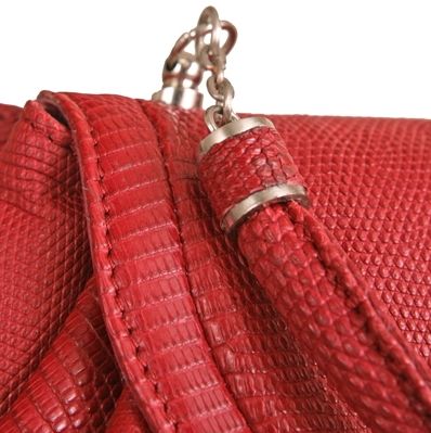 Яркий, классический аксессуар займет достойное место в гардеробе стильных и уверенных в себе женщин. Элегантный дизайн сумочки дополнен оригинальными деталями. Закрывается она красивым клапаном с очень удобным магнитным замочком. По бокам изящная драпировка, необыкновенно женственна форма самой сумочки. Изготовлена эта вечерняя сумочка из высококачественной натуральной кожи ящерицы.