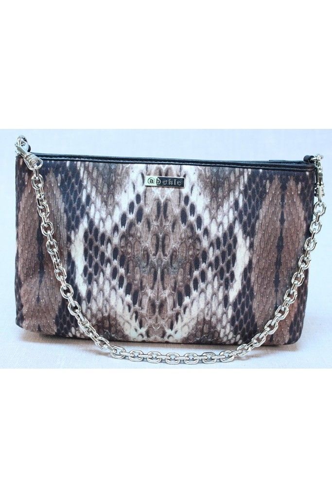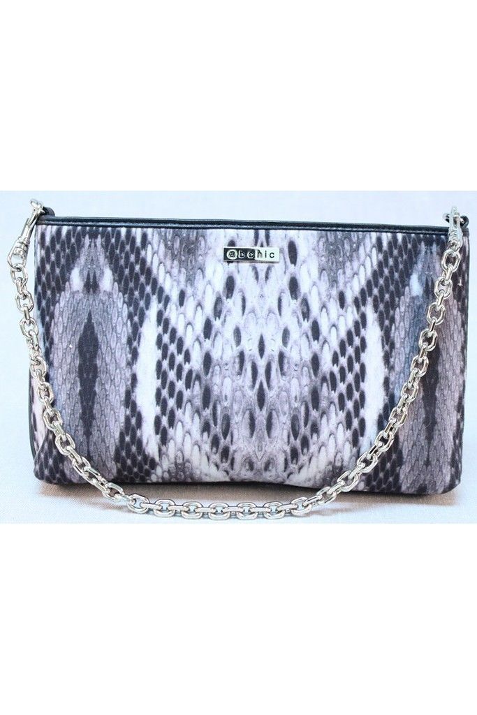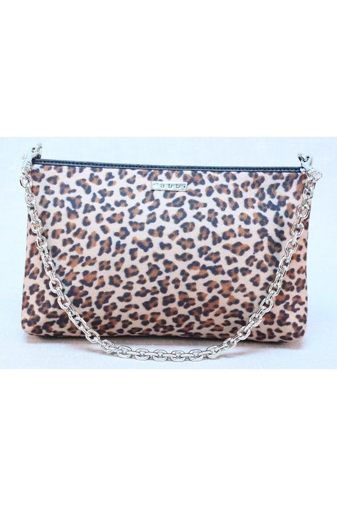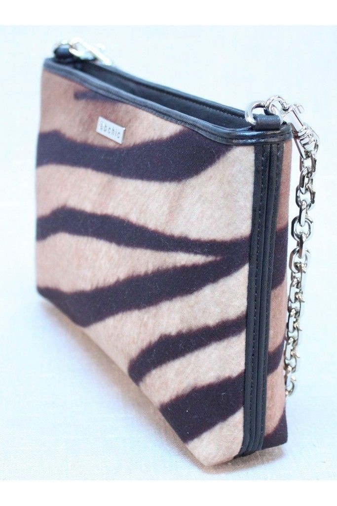 Застёгивается на качественную молнию, отличается декоративной металлической цепочкой. Внутри имеется три отделения и два маленьких кармашка.
