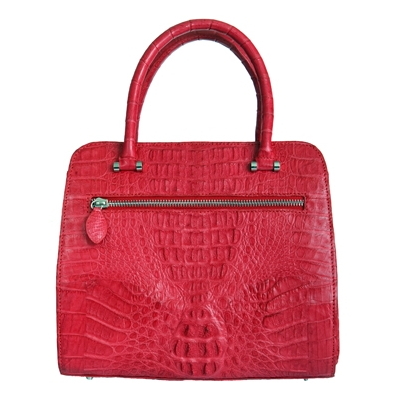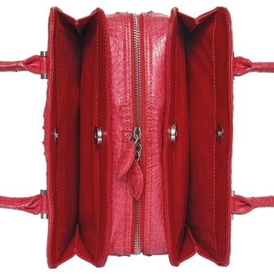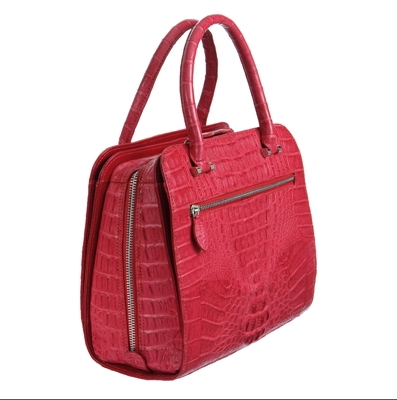 Очаровательная сумочка выполнена из кожи крокодила, по бокам добавлены оригинальные потайные карманы на магнитных застежках.