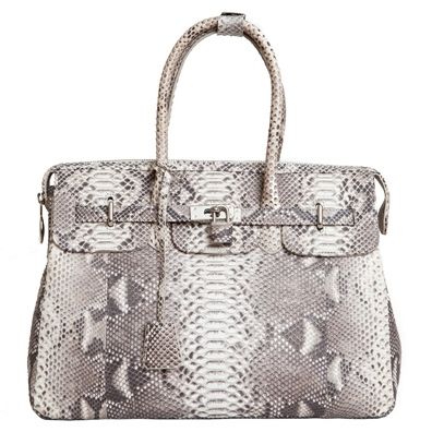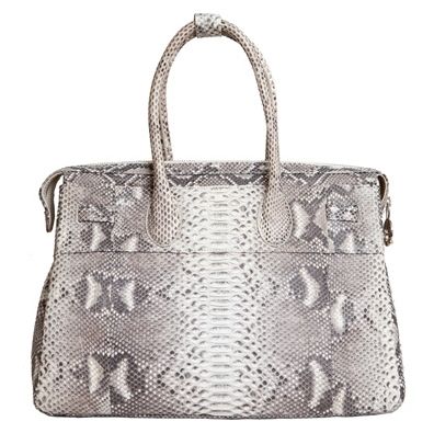 Сумка выполнена из высококачественной кожи питона и шкуры коровы. Все молнии и фурнитура сделаны из металла, а внутренняя подкладка из свиной кожи. В сумке два отделения и несколько дополнительных кармашков для телефона, кредиток и документов. Размер сумки формата А4.