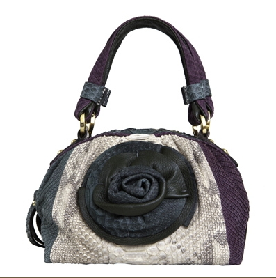 Потрясающее соединение фиолетово-зеленого цвета, оригинальность дизайна и необычайно милый цветок-украшение – все это составляющие успеха маленькой сумочки из кожи питона, выполненной в романтичном стиле. Куда бы Вы ни направились: на вечеринку, званый ужин или свидание, эта сумочка может стать Вашей постоянной спутницей.