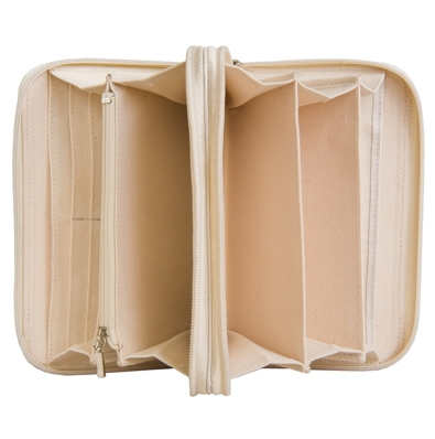 Вы будете удовлетворены и вместительностью данной модели с тремя отделениями: на молнии для мелочи и набор отделений для визитных и кредитных карт.