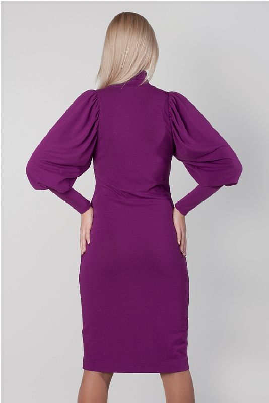 Воротник высокий, прилегающий к шее. Платье отлично подойдёт для зимних и осенних дней. В нём вы всегда будете в центре внимания!
