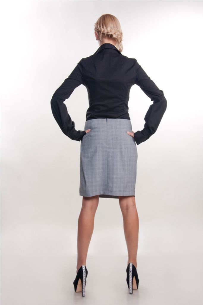 Воротник – стойка, блуза застёгивается на несколько маленьких пуговиц спереди. Благодаря двум вытачкам спереди, она отлично садится по фигуре. Идеальный вариант для сотрудников офиса.