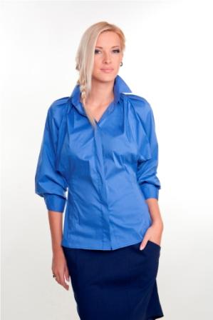 Длина блузки – до линии бёдер. Основная часть блузы – прямая, ни чем не украшенная, что делает этот наряд ещё более модным. Рукава – вот уникальная особенность этой модели. От линии плеча, рукава очень свободные, сзади имеется несколько складок, благодаря чему и создаётся эффект летучей мыши. Длина рукава – чуть больше, чем три четверти. У основания имеются плотные высокие манжеты.