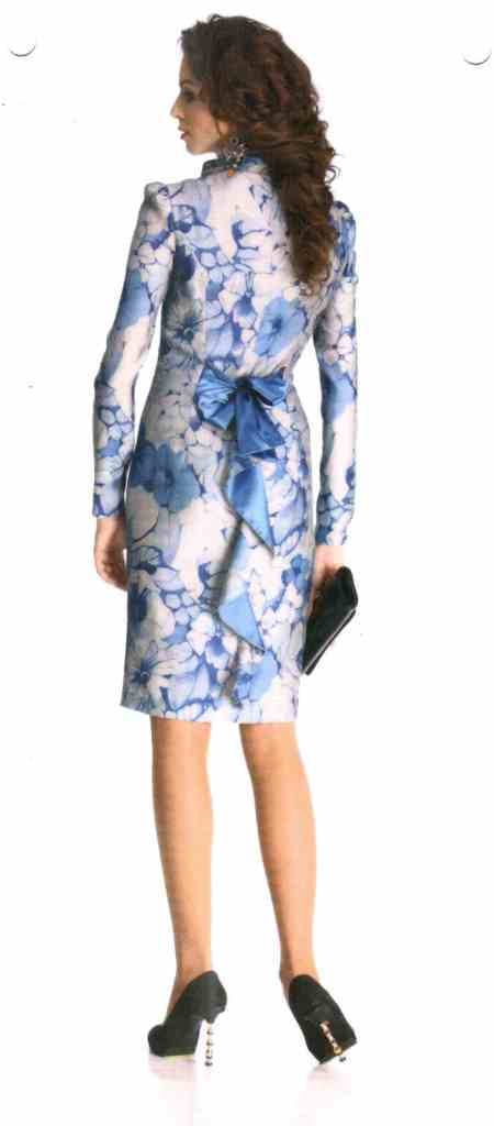 Приталенный силуэт и длина до колен аппелируют к классике, но всего лишь несколько декоративных приемов и Вы получаете современное модное и очень красивое платье. Яркий принт, рукава-фонарики, воротник-планка, достаточно высокий разрез и, конечно, бант сзади - все это превращает данную модель в фаворита нынешнего сезона. А свойство платья стройнить фигуру сделает его Вашим любимым!