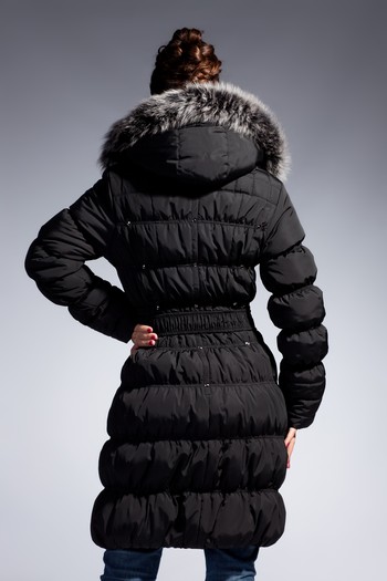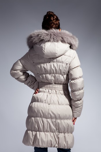 Использование современных материалов и технологий придают пальто прекрасные теплосохраняющие свойства. Не останутся незамеченными и оригинальные рукава с буфами, и капюшон с меховой окантовкой, и оригинальные буфы в нижней части куртки.