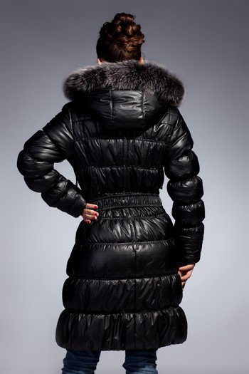 Красиво, стильно и тепло. Длинная куртка или короткое пальто – в любом случае эта модель полностью удовлетворяет всем Вашим требованиям к зимней верхней одежде. Удивительно красивая ткань классического черного цвета под "кожу", переливаясь в солнечных лучах, придаст зимним дням яркость.