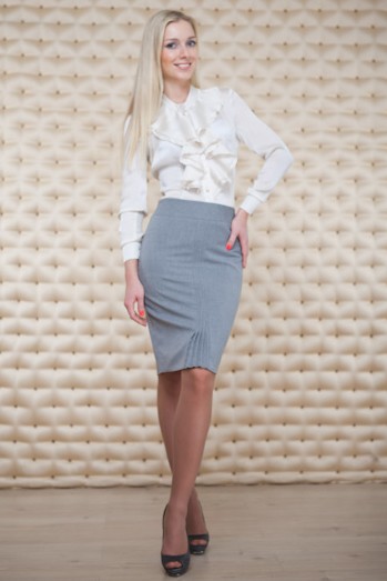 Необыкновенная и очень стильная юбка из светло-серой ткани, станет неотъемлемой вещью в вашем гардеробе.