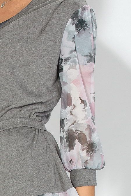 Элегантный комбинированный жакет с цветастыми рукавами станет незаменимой вещью в вашем гардеробе.