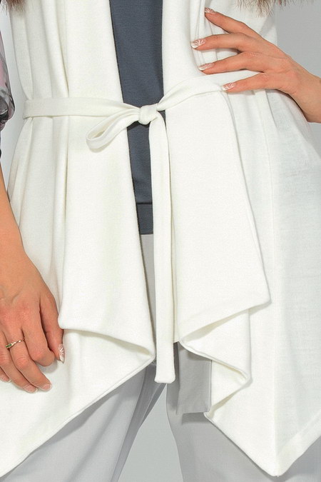 Потрясающий белоснежный жакет без рукавов не оставит равнодушным ни одно женское сердце. Оригинальный покрой поразит любое воображение. Белоснежный нарядный цвет, нарядные фалды, тоненький поясок - сразу же создается атмосфера праздника и хорошего настроения.
