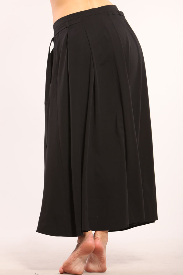 Уникальной особенностью данной модели является её фасон. Длина юбки – выше щиколотки. Юбка украшена широкими складками, которые хаотично образуются при ходьбе.