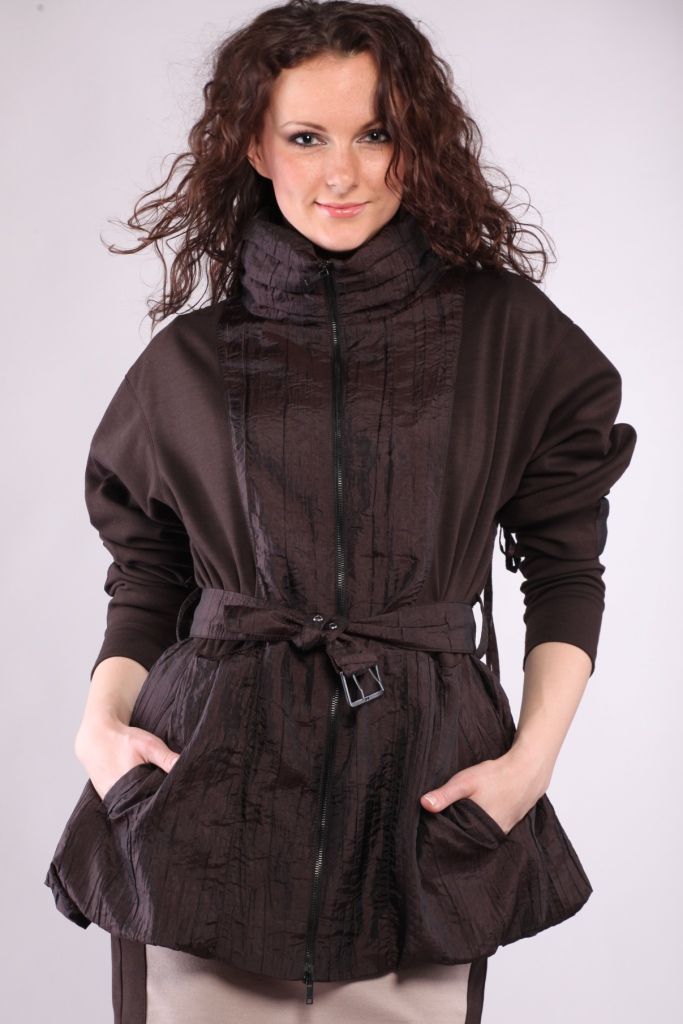Застёгивается плащ на молнию, проходящую спереди посередине. Длина изделия – ниже линии бедра.