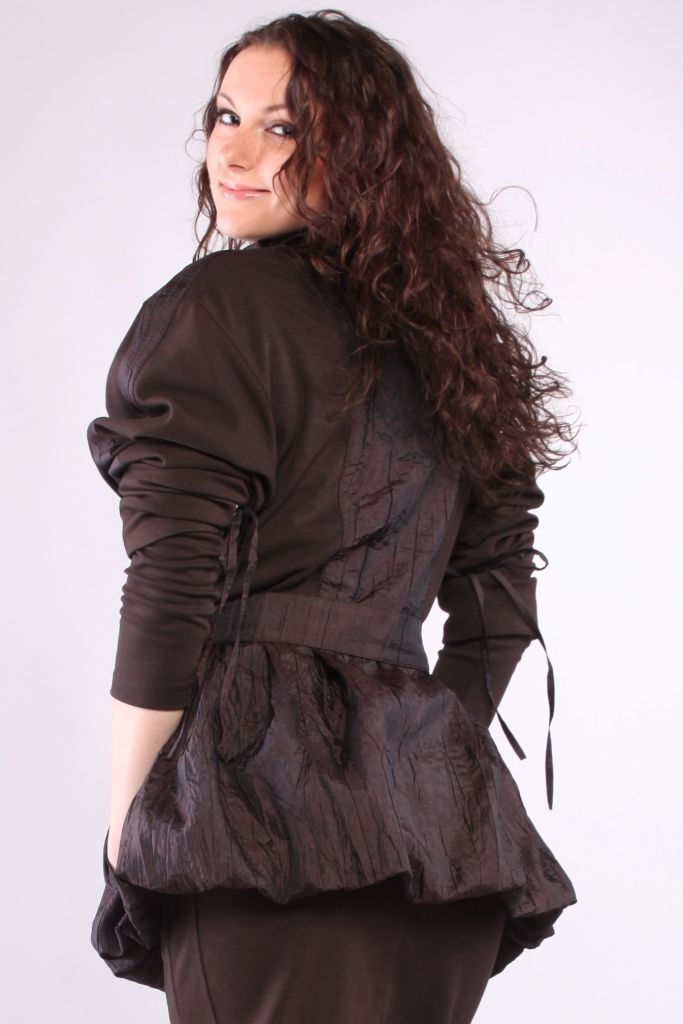 Отличительной особенностью данного наряда является его фасон. Плащ выполнен из двух типов тканей, которые очень гармонично сочетаются.