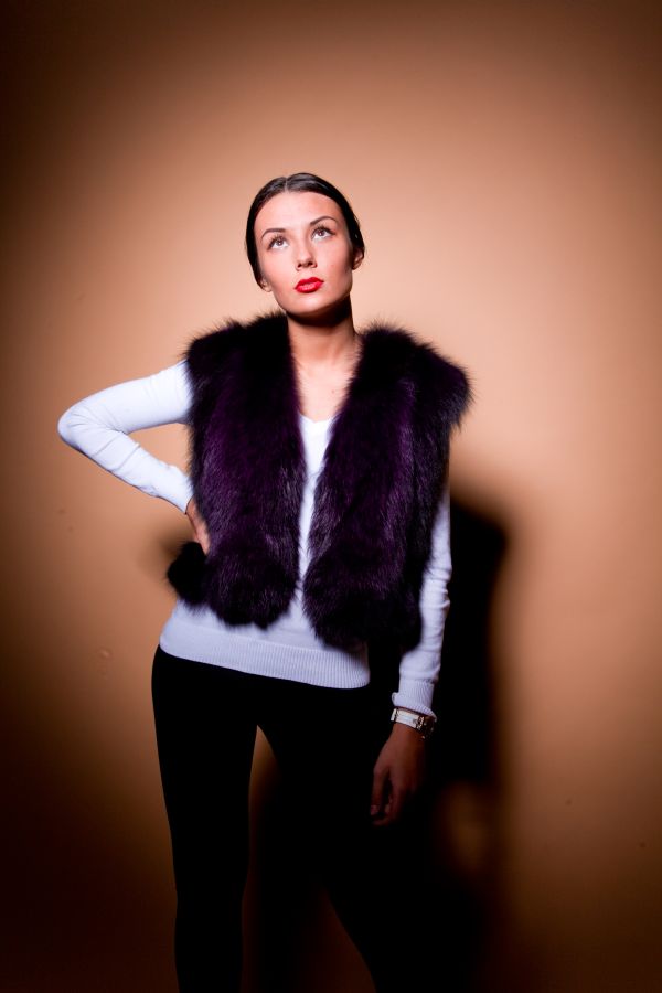Натуральный мех, фиолетовый оттенок и покрой в виде жилета - беспроигрышный вариант, который удовлетворит самым строгим требованиям настоящей модницы. V-образный вырез горловины подчеркнет изящную шею, а короткая длина до бедер позволит с легкостью комбинировать этот жилет с абсолютной разной одеждой. Интересная деталь - передняя и задняя часть соединены по бокам ремешками.
