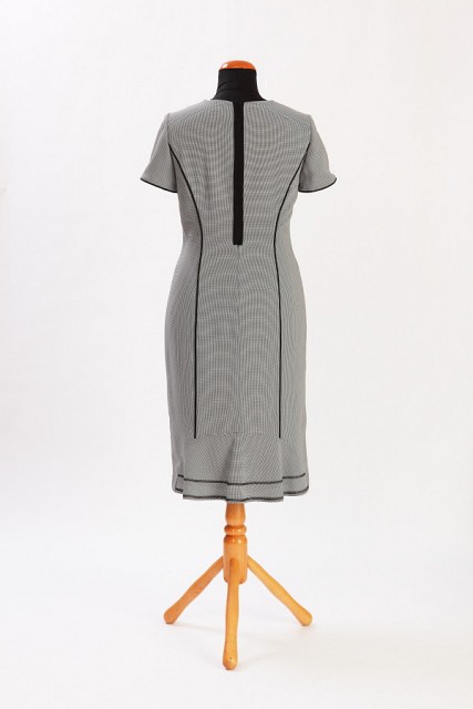 Элегантный приталенный покрой отлично смотрится в сочетании с дизайнерским решением оттенить серый оттенок основного материала черной оторочкой, плавные линии которой придают фигуре дополнительную женственность, а вертикальные - прекрасно стройнят. Квадратный вырез гордовины очень удобен и станет хорошим фоном для изысканной бижутерии.