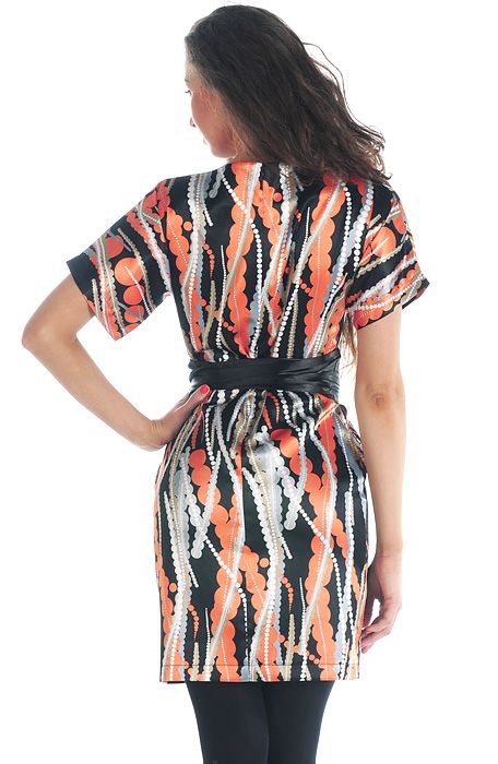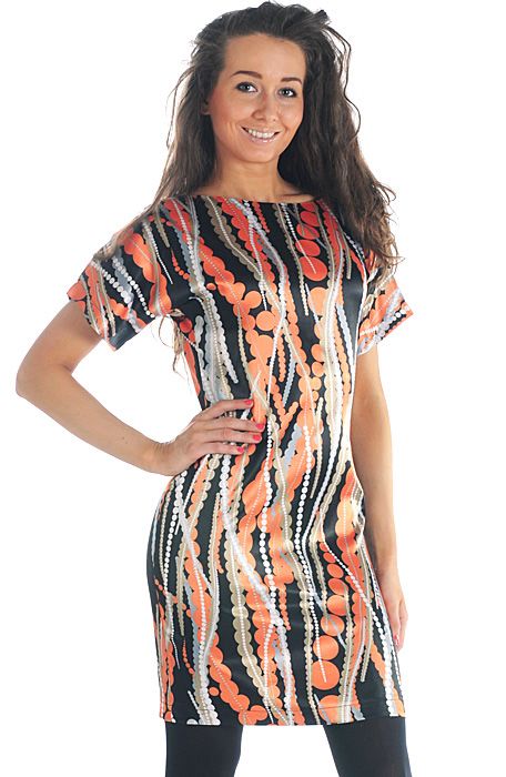 Отличительной чертой данной модели является простота фасона и покроя. Платье имеет длину чуть выше линии колен. Приталенный силуэт позволяет продемонстрировать все прелести вашей идеальной фигуры. Рукава короткие, свободные. Вырез горловины – небольшая лодочка.