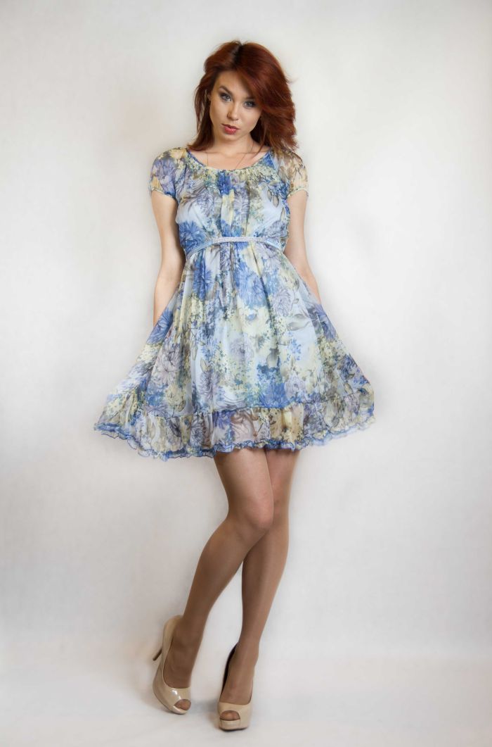 Платье достаточно короткое, но при этом выглядит сдержанным. Широкая юбка по низу подола украшена оборкой. Летящий материал красиво развивается во ремя ходьбы, придавая вашему образу легкость и невесомость.