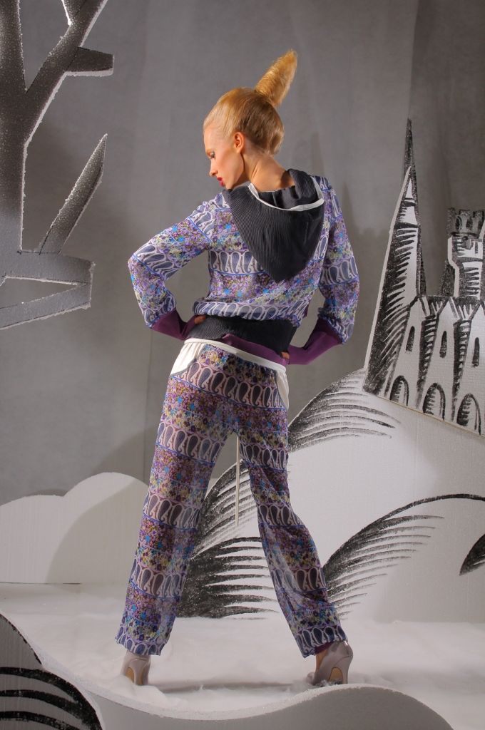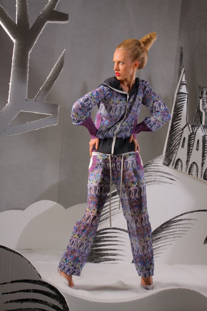 Данная модель отличается своей уникальной яркой расцветкой. Куртка имеет длинные рукава. У основания имеются высокие плотные манжеты насыщенного сиреневого цвета. Застёгивается изделие на металлическую молнию серебристого цвета посредине. Снизу куртка декорирована плотной чёрной резиновой вставкой, благодаря чему, вы может фиксировать положение куртки на бёдрах. Наличие капюшона делает эту модель более модной и стильной.