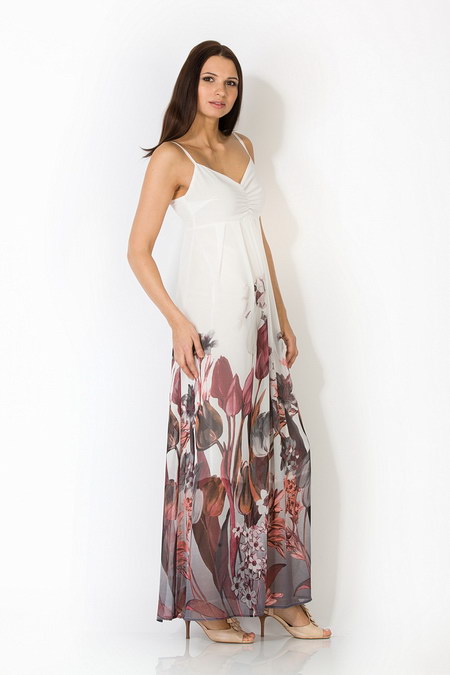 Длинный белый сарафан с цветами. Тонкие бретельки.