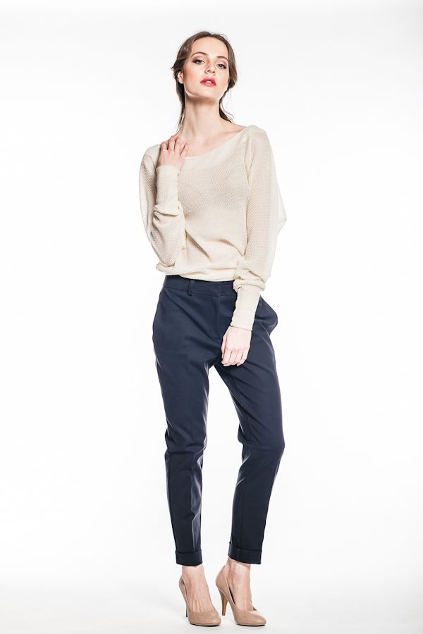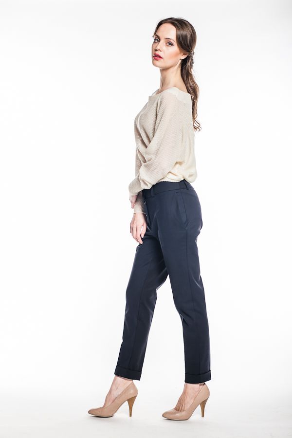Брюки заужены к низу, однако в области бедер весьма комфортны. Классический пояс с местом для ремня, практичные карманы, элегантные стрелки и милые отвороты по низу штанин - все это в сочетании с необычной длиной до косточки и натуральному материалу позволяет данной модели стать основой стильного образа уверенной в себе женщины, знающей цену не только красоте, но и комфорту и качеству.