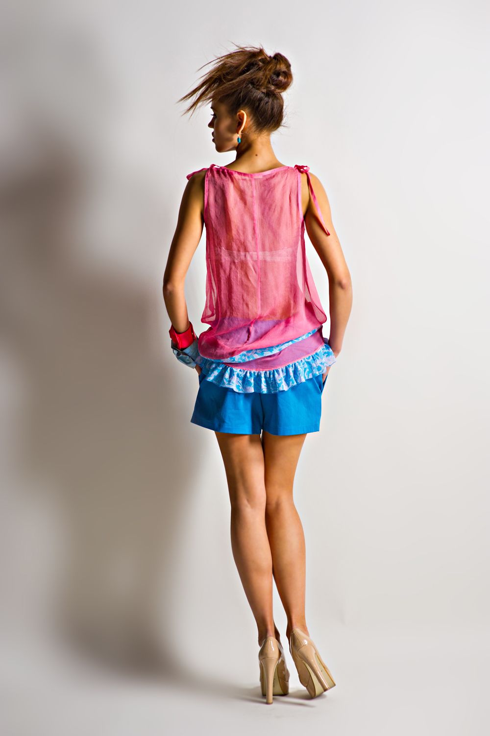 Сама по себе модель свободная, что делает её более привлекательной. Шорты можно носить в сочетании с разнообразными фасонами блуз и топов.