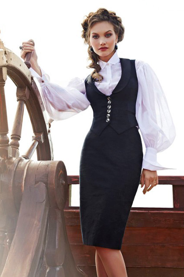 Оригинальная форма лацканов и приталенный силуэт жилета подчеркивают грацию Вашей фигуры, а особую изысканность модели придают оригинальные пуговицы, выполняющие также и функцию деликатного декоративного элемента в отделке.