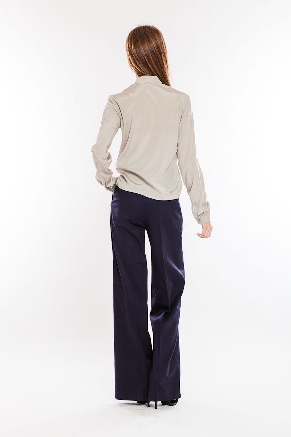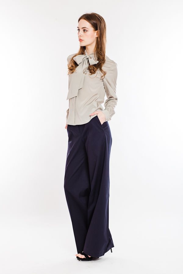 Создать именно такой образ деловой женщины поможет шелковая блуза от Pepen. Блуза классического покроя, с длинными рукавами на манжетах. Подол волнами позволяет носить ее как заправленной, так и на выпуск.