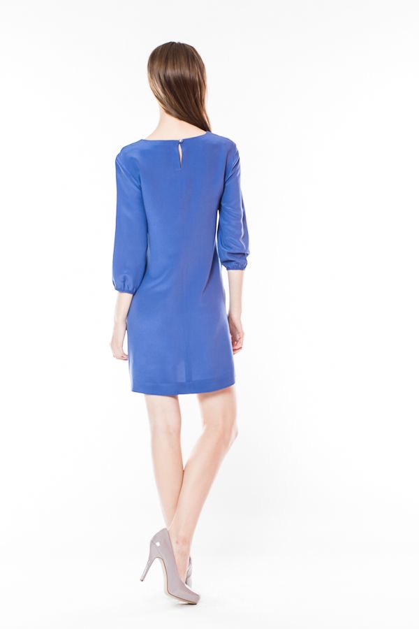 Предлагаемое вашему вниманию платье отвечает самым строгим требованиям стильной молодой женщины. Оно выполнено из комфортного высококачественного легкого материала, имеет прямой силуэт и длинные рукава, присобранные на манжетах. Завершает образ высокий вырез горловины-лодочка.
