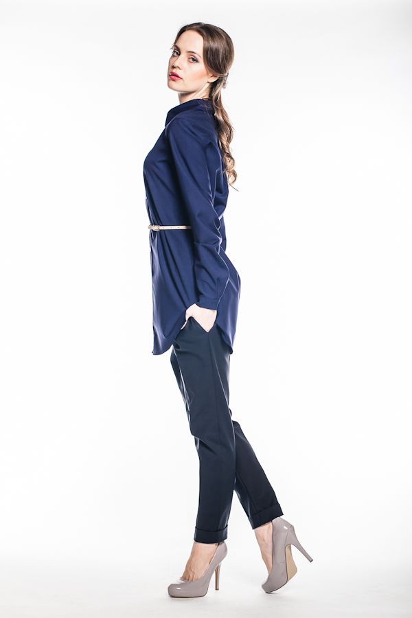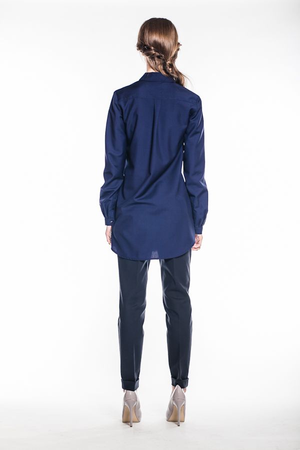 Блуза выполнена в классическом покрое "рубашка", достаточно длинная, полностью закрывает бедра и вполне может сыграть соло или в дуэте с любимыми леггинсами. Рукава длинные, на груди практичный карман.