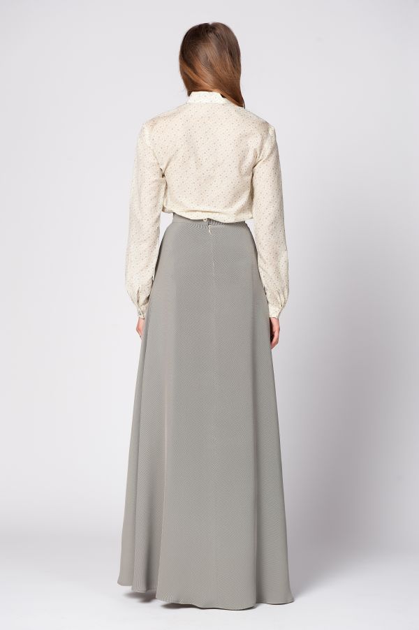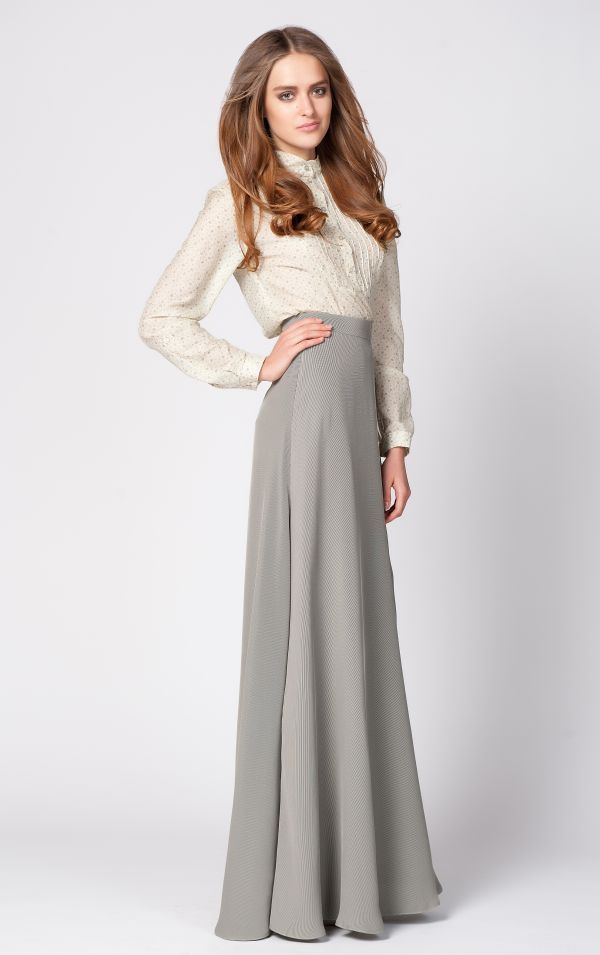 Юбка выполнена из высококачественной вискозы, что позволило модельерам создать идеальный силуэт, безупречно ложащийся по фигуре. Юбка на поясе, досточно широкого покроя, благодаря чему материал образовывает шикарные глубокие вертикальные складки, который придают силуэту стройность и в то же время выглядят очень женственно.