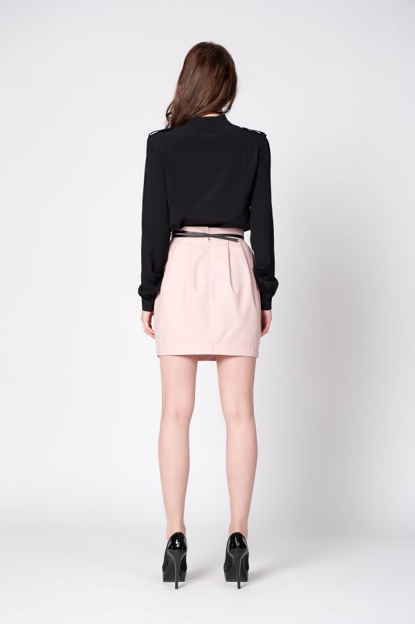 Юбка короткая, однако особый покрой и нейтральный оттенок придают ей элегантный и сдержанный вид, что позволяет использовать данную модель и в качестве детали делового костюма. Приталенный, но не узкий силуэт очень удобен. Изюминка юбки - глубокие вертикальные складки, которые не только обеспечивают идеальную посадку по фигуре, но и придают образу глубину, рельефность и динамику.