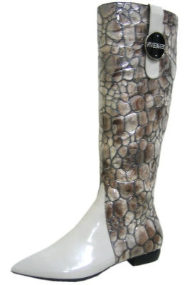 Сочетание бежево-коричневого мраморного лака и белой лаковой коди придает модели особую женственность.