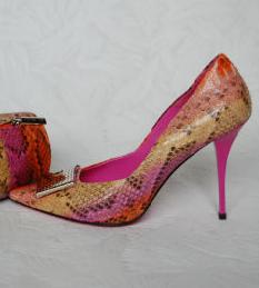 Специальная  поставка  обуви для магазина Elitdress. Шикарные туфли на шпильке из кожи питона VIVIENLEE, цвет мультиколор, отлично будут смотреться на ваших ножках на любых вечеринках в комплекте с маленькой сумочкой из кожи питона