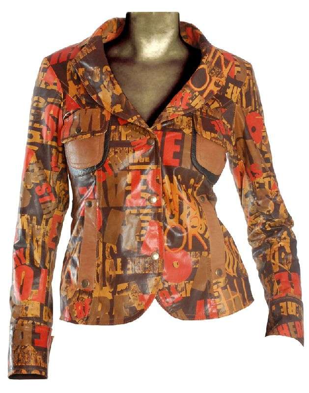 Модель приталенного силуэта, на груди небольшие накладные карманы с отделкой из кожи контрастных цветов.