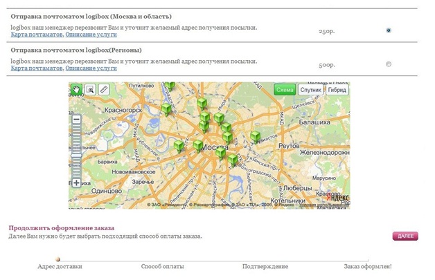 1. Выбрать в качестве способа доставки товара самостоятельное получение в почтомате.